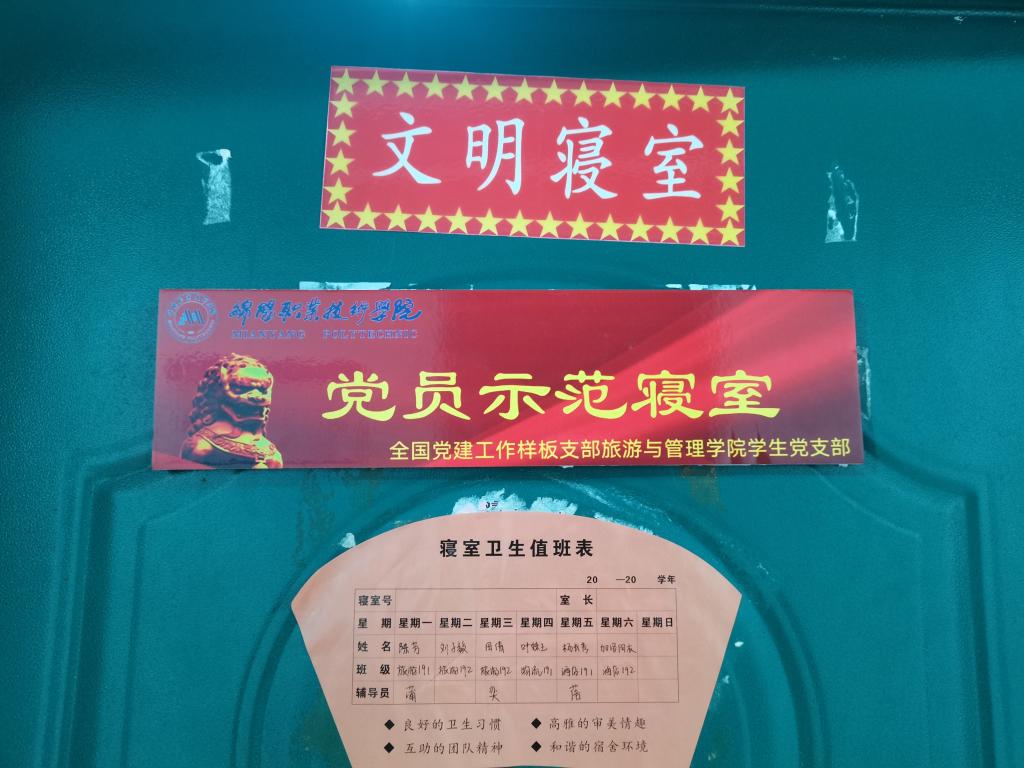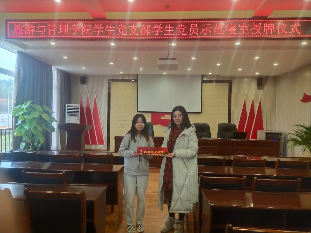 2021年12月3日,旅游与管理公司员工党支部在材料大楼三楼会议室举行了“党员示范寝室”授牌仪式。参加此次授牌仪式的有员工党支部组织委员兼纪检委员闫涵玉以及部分预备党员。