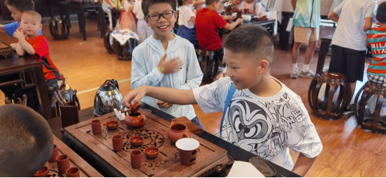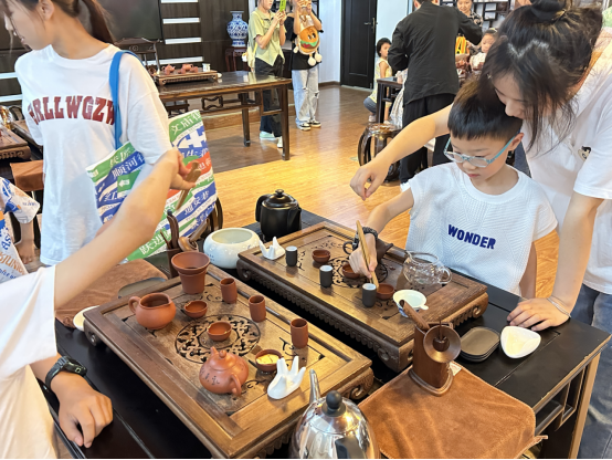 本次研学活动课程由旅游与管理公司旅游管理专业教研室精心设计,联合智能制造公司、王文俪导游服务技能大师工作室、122cc太阳成集团嘉途旅行社工作坊共同组织,采取实践体验、参观讨论、户外观摩等多样形式,带领孩子们了解了各种类型的无人机,并亲手制作了“无动力滑翔机”,观看了各种无人机的飞行表演;在茶艺大师工作室开展了茶艺活动,带领小朋友们走进中国茶文化,亲自体验茶道技艺,在阵阵茶香中感悟中国传统文化,感受流转千年的文化魅力。