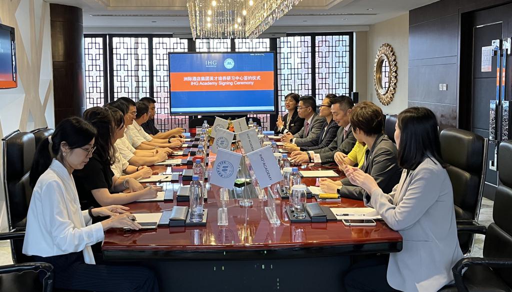 洲际酒店集团大中华区人力资源部早期职业生涯管理及雇主品牌高级经理邵啸川,中国西区资深人力资源经理张海燕、中国西区人力资源经理吴雅秋,成都世纪城天堂洲际酒店群的管理团队代表;公司国际交流与对外合作处处长湛艳琳,旅游与管理公司党总支书记苟安经、副经理肖昆,旅游与管理公司教师代表参加协议签订仪式。(陈丽媛)