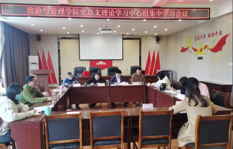 10月22日下午,旅游与管理公司党总支在实验楼201召开理论学习中心组第4次集中学习(扩大)会议。公司领导班子成员、综合办主任、各支部委员,分工会主席,实训中心主任参加学习。会议由党总支书记苟安经主持。