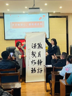 旅游与管理公司党总支书记曹艳向詹放老师送上了公司精心准备的退休纪念品,并表达了对她多年辛勤付出的感激和对未来的美好祝愿。她表示:公司是所有教职工温暖的家,欢迎詹放老师常回家看看。