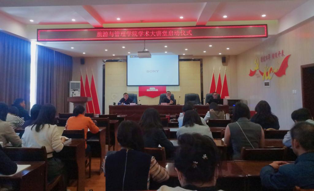 4月10日下午,旅游与管理公司在材料大楼A301会议室举行“学术大讲堂”启动仪式暨首期讲座,全体教职工参加会议。