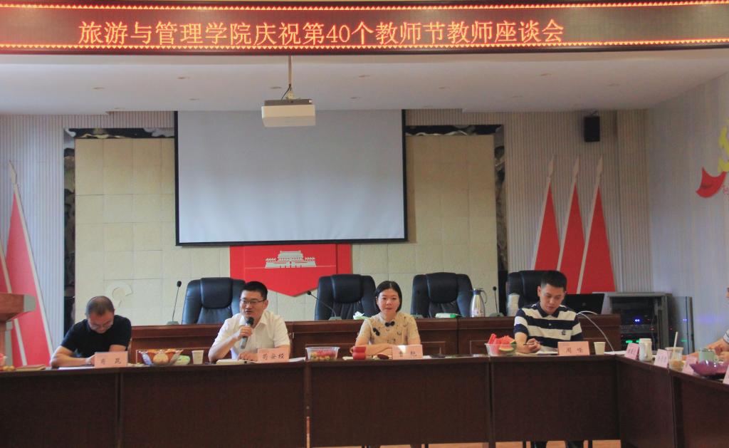 为庆祝第40个教师节的到来,9月3日下午,旅游与管理公司在材料大楼A301会议室举行教师节座谈会。公司党委常委、副董事长苟安经出席并讲话。公司党总支书记曹艳主持会议,全体教职工参会。