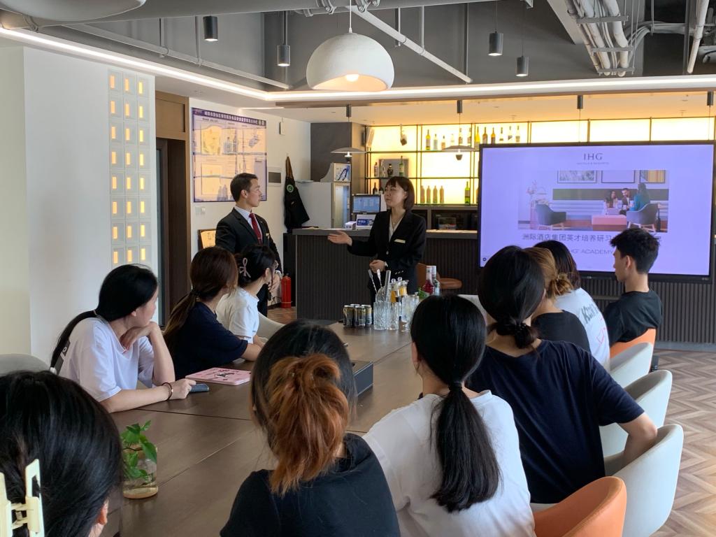 本次活动由成都世纪城洲际大饭店人力资源部赵雪莉、培训师沙库拉林、旅游与管理公司酒店管理与数字化运营教研室教师们及2022级酒店管理与数字化运营专业洲际英才班的17名员工参加。