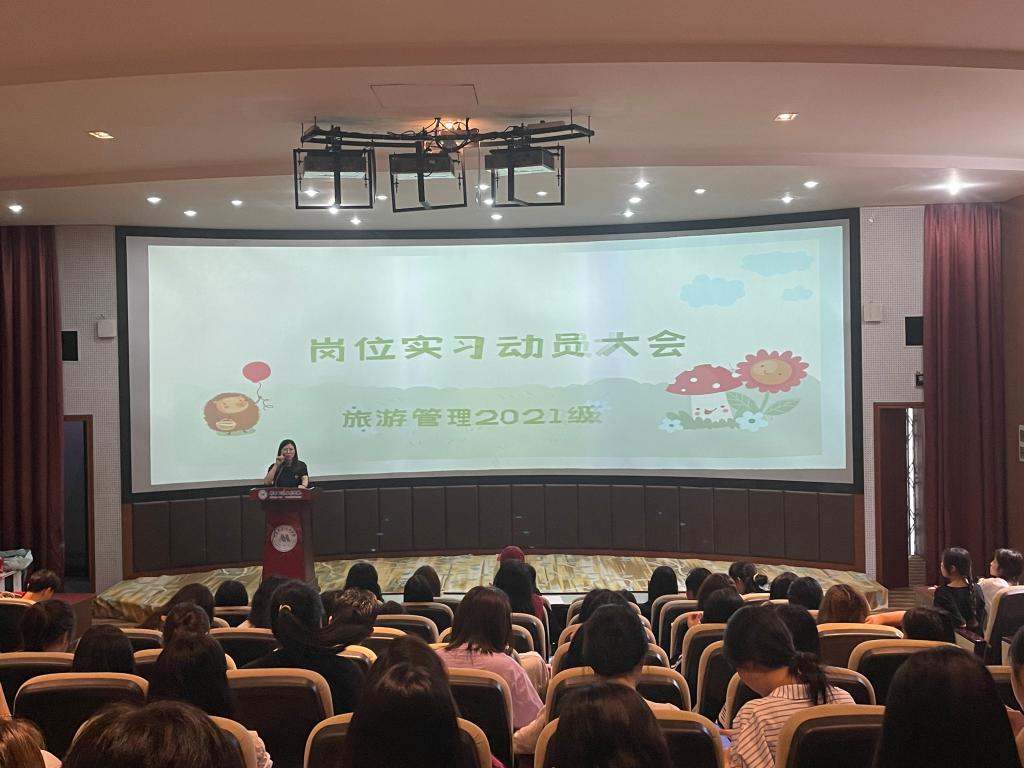 岗位实习是旅游管理专业教学的重要实践环节,也是加深和巩固员工所学理论知识,训练和培养员工实际工作能力的重要途径,在培养员工实践能力、创新精神,树立事业心、责任感等方面起着重要的作用。为保证旅游管理专业岗位实习工作顺利进行,6月5日上午,旅游与管理公司召开2021级旅游管理专业岗位实习动员大会。会议由旅游与管理公司副经理肖昆主持,旅游管理专业教研室全体教师出席此次动员会议。