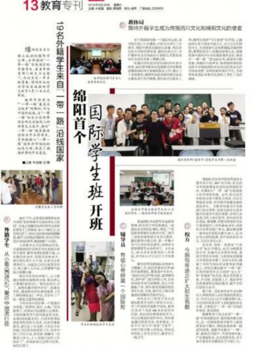 ——摘自2018年9月26日《绵阳晚报》第十三版《教育专刊》整版报道:《绵阳首个国际员工班开班》
