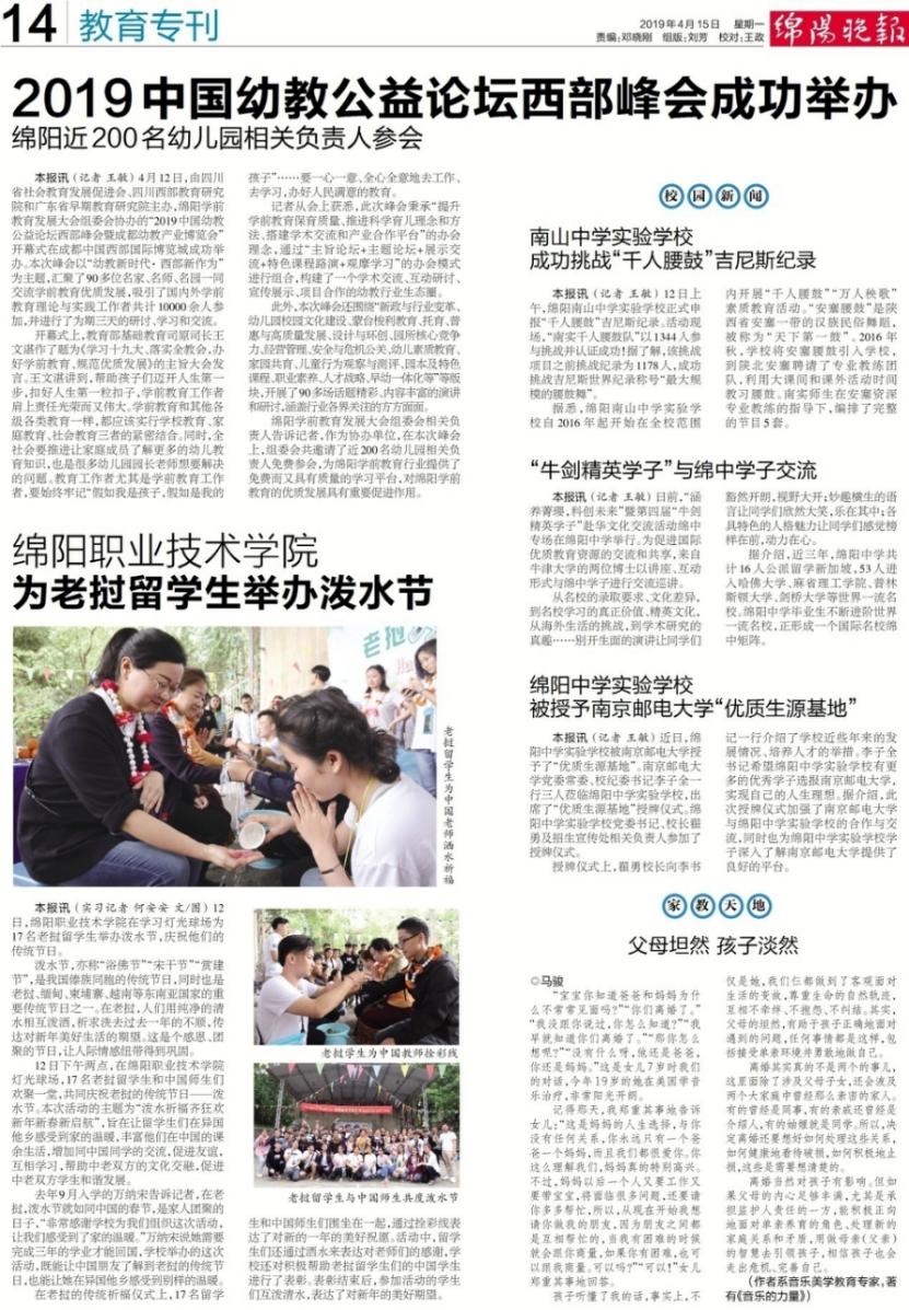 《绵阳晚报》报道:绵阳职业技术公司为老挝职工举办泼水节