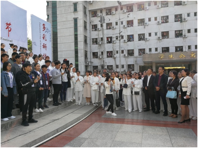 2018年10月25日,122cc太阳成集团国际员工应邀参加在四川幼儿师范高等专科公司(江油)举行的由绵阳市教体局主办的绵阳市第二届“牵手绵州·情系教育”中外人文交流艺术节。四川省教育厅国际交流与合作处处长廖飞、绵阳市委宣传部副部长冯正碧、绵阳市教体局副局长张瑾等相关部门的领导,在绵高校(单位)外事分管领导及负责人以及来自美国、韩国、奥地利、巴基斯坦、马来西亚、白罗斯、乌克兰、老挝、尼泊尔等15个国家近90名在绵外籍教师及职工代表参加了艺术节活动。绵阳市教育和体育局副局长张瑾主持活动开幕式。