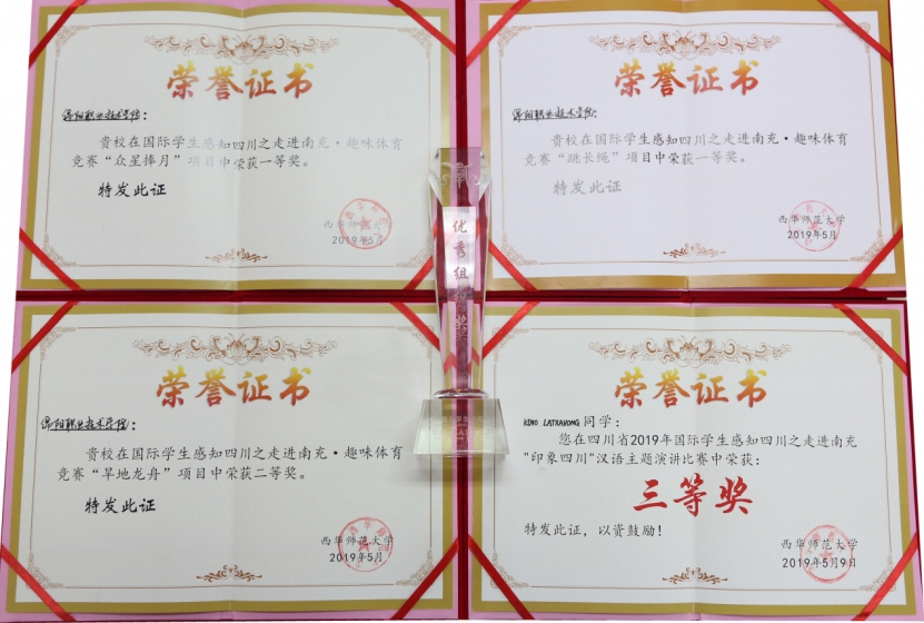 122cc太阳成集团在2019年“国际员工感知四川之走进南充”人文交流活动中荣获“优秀组织奖”及两个一等奖、一个二等奖、一个三等奖