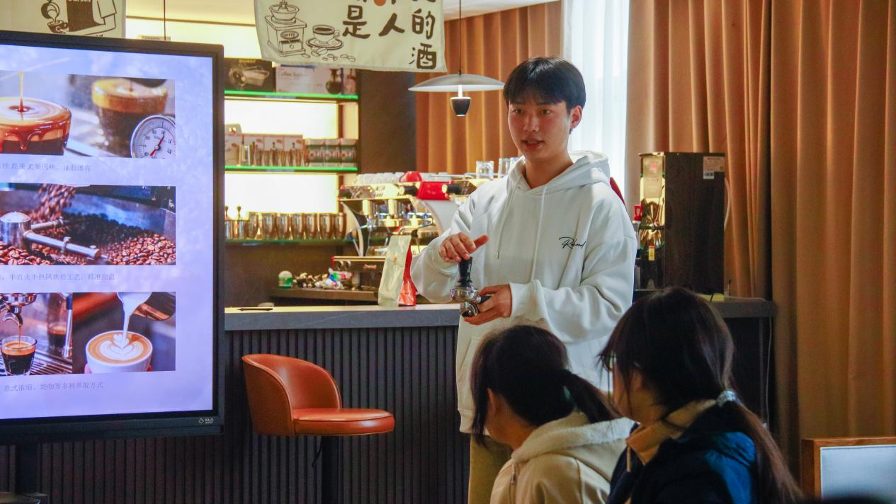 活动现场氛围热烈、成效显著。茶艺实训室内,员工讲解员身着传统服饰,规范演示茶艺全流程并阐释文化内涵,同学们在观摩后亲身体验品茶之趣;咖啡实训区中,咖啡师细致展示手冲与拉花技艺,指导员工完成创意拉花咖啡,互动中掌声不断;绵阳米粉展厅里,工作人员系统介绍其历史沿革、工艺特色与产业现状,同学们在品鉴中深化了对地方饮食文化的理解;烹饪实训室内,面点师傅娴熟演示各类中式面点制作,同学们积极动手实践,在欢乐中体验技能乐趣。活动全程组织有序、内容充实,实现了“展示、体验、交流”的有机融合。