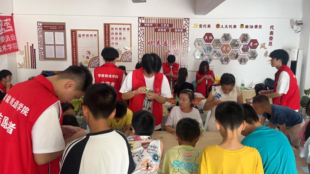 为深入学习贯彻党的二十大精神,落实立德树人根本任务,引导青年员工在社会实践中厚植家国情怀、锤炼过硬本领,2025年暑期,在校团委统筹指导下,智能制造公司联合旅游与管理公司组建师生实践团队,赴魏城镇桂花社区开展为期5天的“乡野课堂育新苗 实践熔炉铸栋梁”主题社会实践活动。活动累计动员72人次志愿者参与,服务社区儿童超400人次,以多元化实践举措为乡村儿童送去温暖与成长。