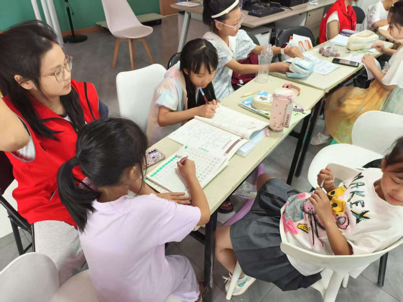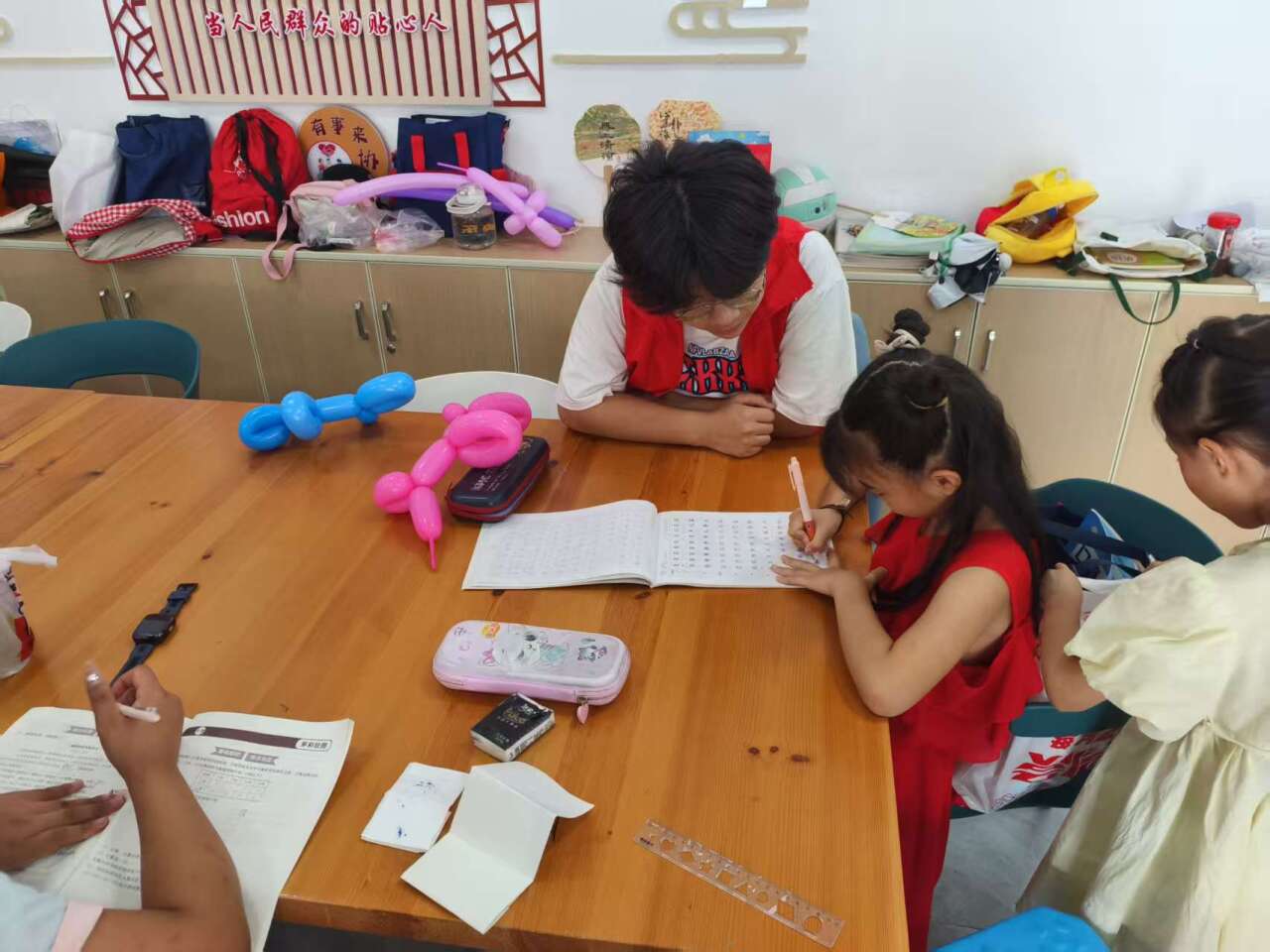 考虑到社区部分儿童家长忙于农务,实践团队特别开设“课后辅导角”。队员们针对不同年级孩子的学习需求,耐心讲解数学计算、语文朗读等知识点,帮助检查暑假作业,引导养成良好学习习惯。“姐姐,这道题我还是不太懂......”“哥哥,我的作文这样写可以吗?”课堂上的轻声询问与细致解答,编织成温暖的陪伴画卷。