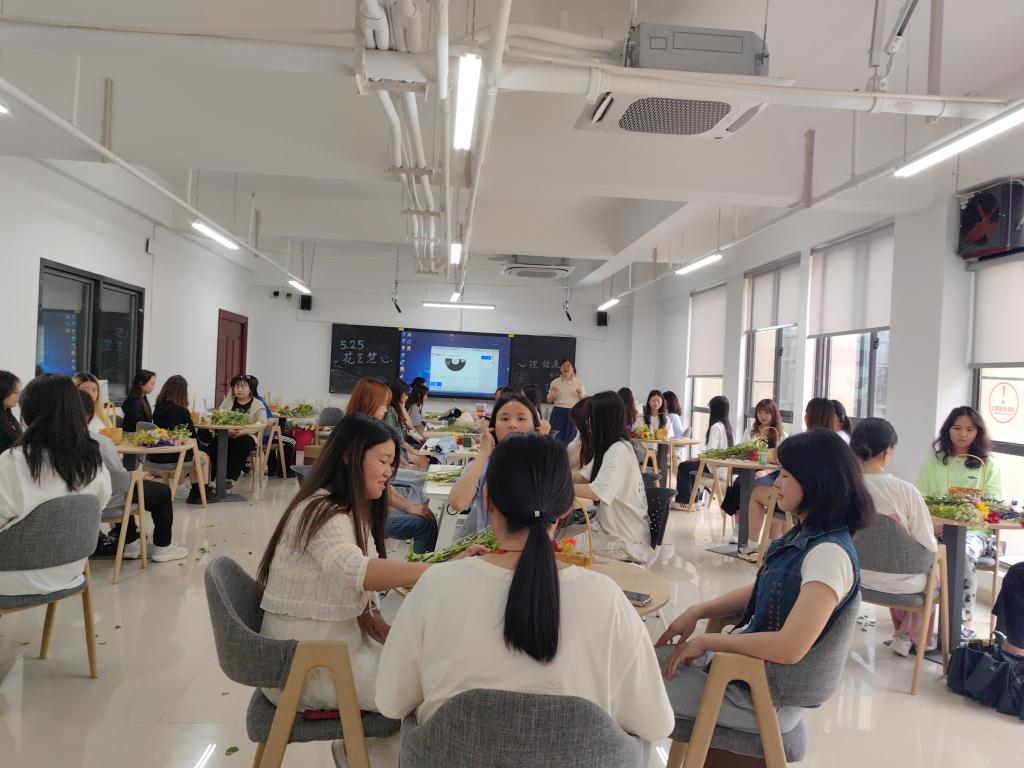 旅游与管理公司于2024年5月15日在第二教学楼花艺室208开展“5.25”心理健康月系列活动——花艺慧心。此次活动将花艺与冥想相结合,欣赏花卉、感受花香、体验插花,帮助同学们缓解焦虑、提高注意力、增强自我意识,通过集中注意力、调节呼吸来放松身心。