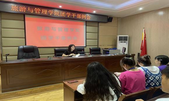 9月3日,旅游与管理公司在实验楼201召开新学期第一次团学干部例会。团总支书记郑静及团学干部共40余人参加了本次会议。