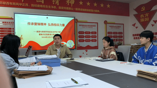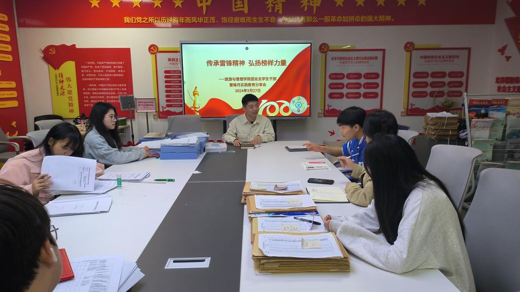 2024年3月27日,旅游与管理公司团总支开展“传承雷锋精神,弘扬榜样力量”雷锋月主题教育实践分享会,会议由团总支书记文阳兴家主持,全体团学干部参加。旅游与管理公司党总支副书记周嵘参加会议。