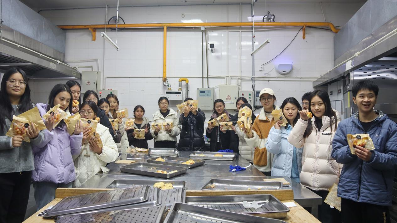 活动采用“跨年级+跨部门”混合编组方式,组建8个协作小组,每组配备1名烹饪专业员工担任技术指导。在揉面、发酵、整形、烘烤等环节中,同学们分工明确、默契配合,一边学习面点制作技巧,一边交流工作心得。实训室内欢声笑语不断,面包香气四溢,大家不仅收获了亲手制作的成果,更在协作与分享中加深了理解、拉近了距离,有效增强了团队认同感与组织归属感。