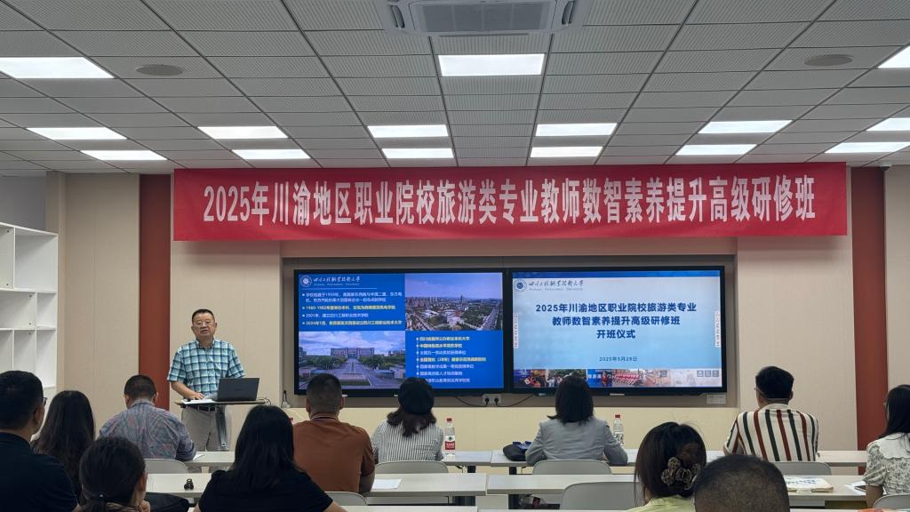 5月27日至30日,2025年川渝地区职业院校旅游类专业教师数智素养提升高级研修班在四川工程职业技术大学旅游管理公司成功举办。本次培训由成渝地区双城经济圈文化和旅游产教联盟和四川省文化旅游企业联盟主办,公司和四川工程职业技术大学、重庆青年职业技术公司协办,依托文化和旅游部全国文化艺术职业教育和旅游职业教育提质培优行动计划,聚焦新一轮“国双高”建设背景下的产教融合与科教融汇,旨在推进川渝职业院校旅游类专业“五金建设”,全面提升教师数智化教学能力、技术应用能力与跨界融合创新能力。来自川渝地区十余所院校的20余名骨干教师参与研修。成渝地区双城经济圈文化和旅游产教联盟秘书长、公司旅游与管理公司经理肖昆,南充职业技术公司副经理郑小红、财经公司经理张伟轶,四川工程职业技术大学旅游管理公司经理张伟等领导出席了开班仪式。